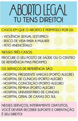 Sabendo que as mulheres, muitas vezes, desconhecem esse direito, queremos que todas tenham acesso à informação, acolhimento e atendimento na rede de hospitais habilitados a fazer o aborto legal, no Rio Grande do Sul.